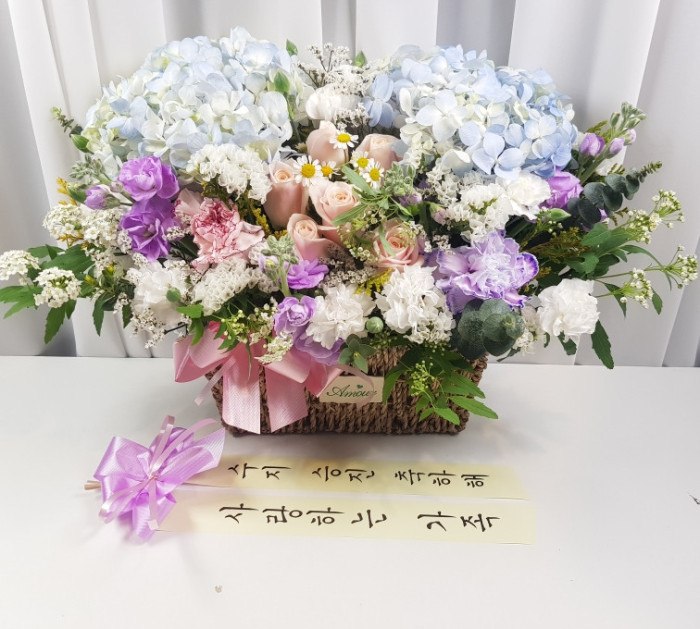 수국 장미 바구니