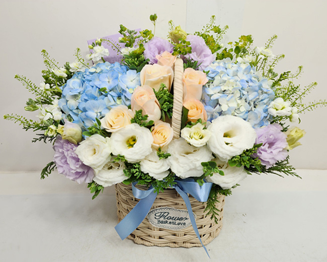 수국 장미 바구니