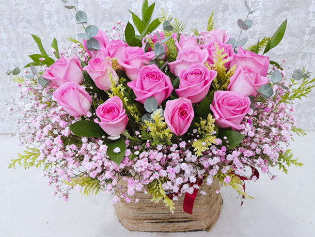 TV소개된 그 칼라안개와 핑크장미 꽃바구니