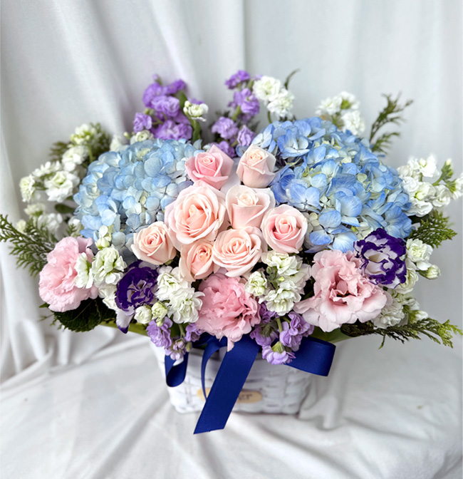 수국 장미 바구니