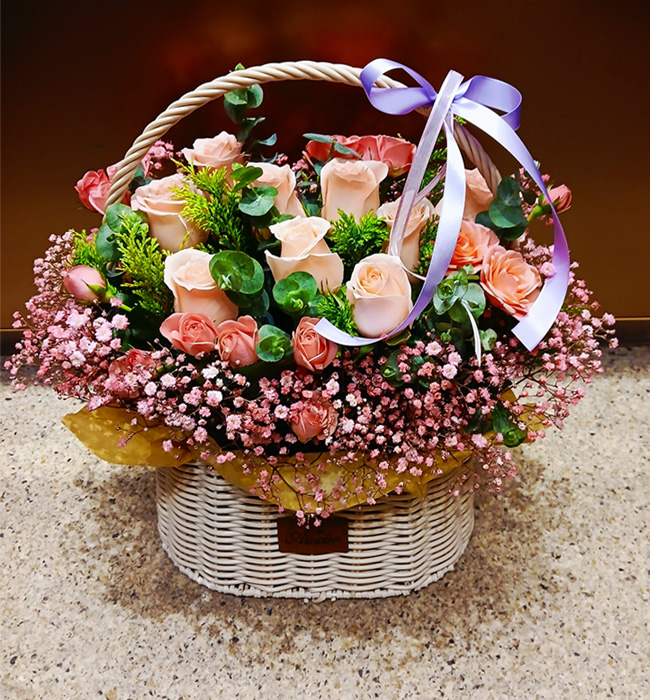 TV소개된 그 칼라안개와 핑크장미 꽃바구니