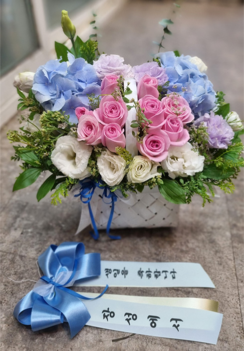 수국 장미 바구니