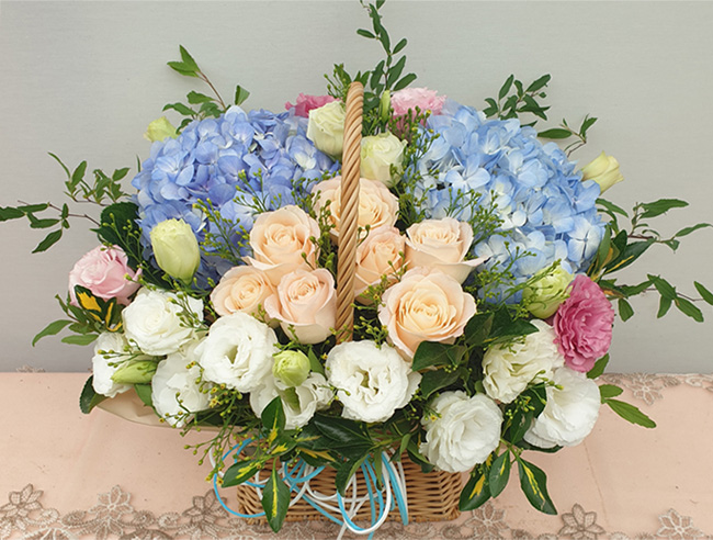 수국 장미 바구니