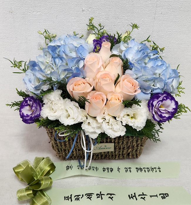 수국 장미 바구니