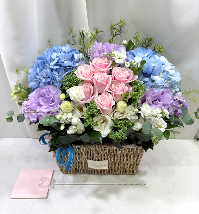 수국 장미 바구니