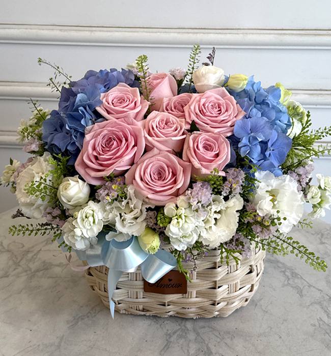 수국 장미 바구니
