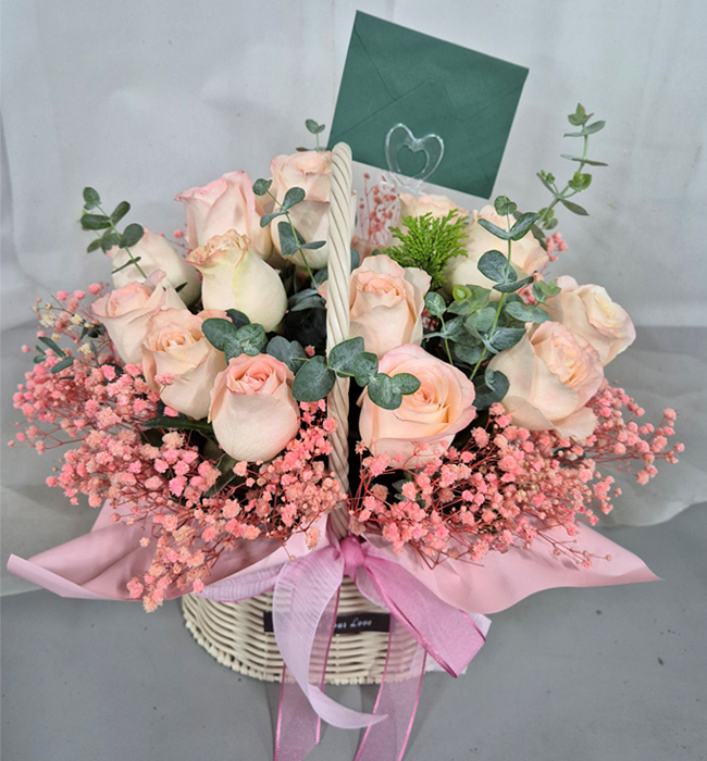 TV소개된 그 칼라안개와 핑크장미 꽃바구니