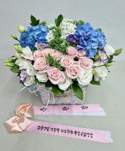 수국 장미 바구니