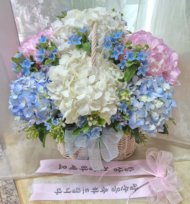 순백의 수국바구니