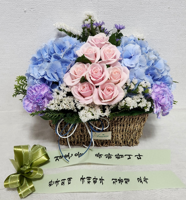 수국 장미 바구니