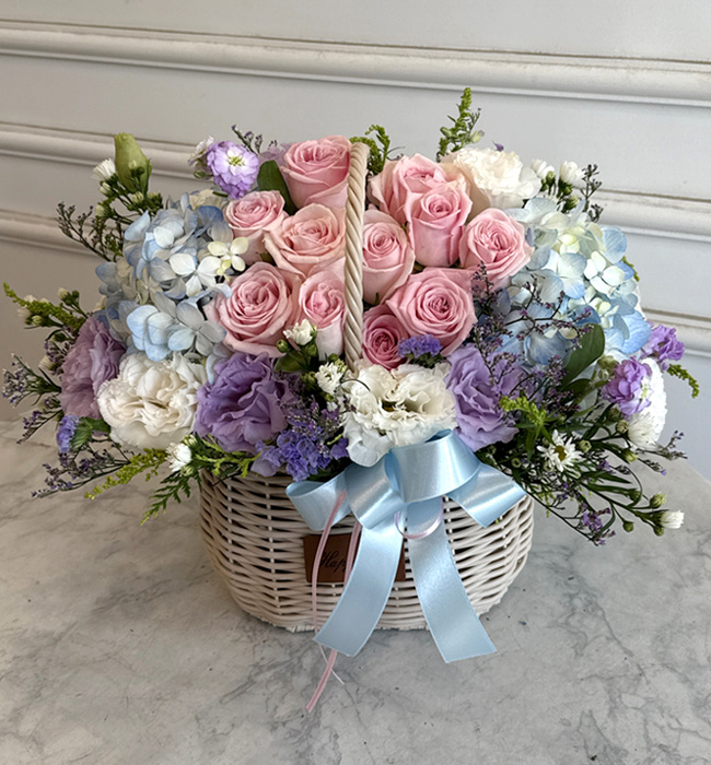 수국 장미 바구니