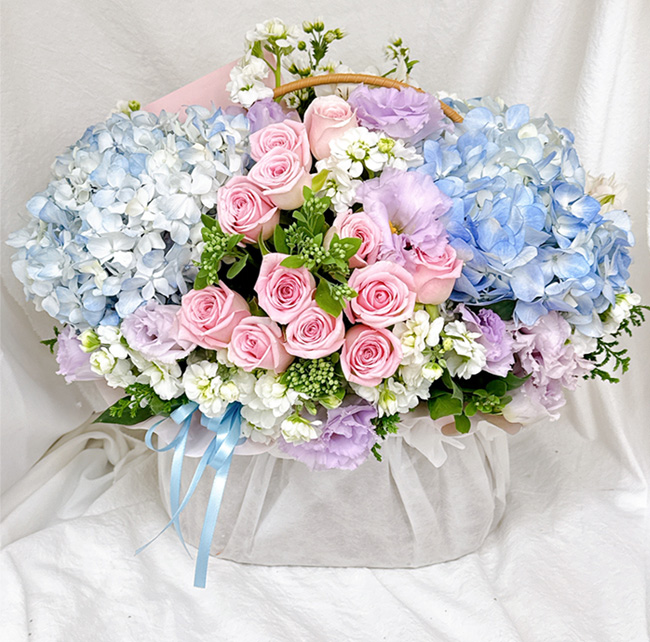 수국 장미 바구니
