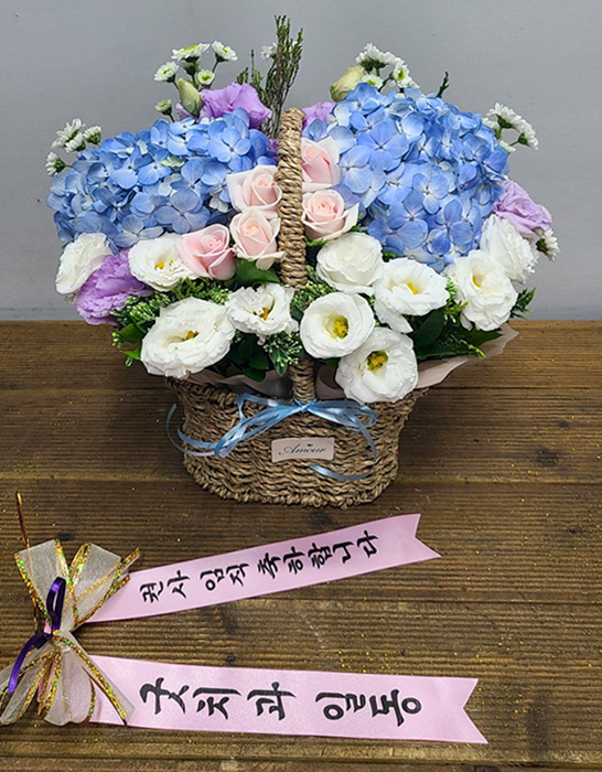 수국 장미 바구니