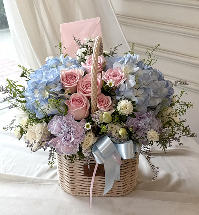 수국 장미 바구니