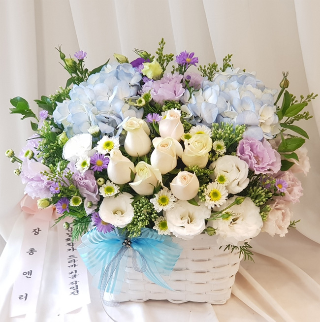 수국 장미 바구니