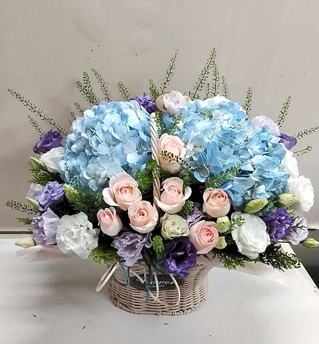수국 장미 바구니