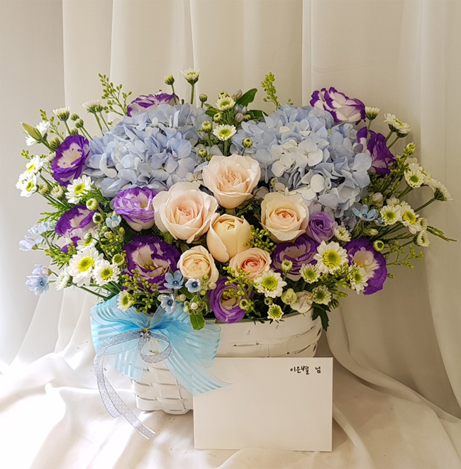 수국 장미 바구니