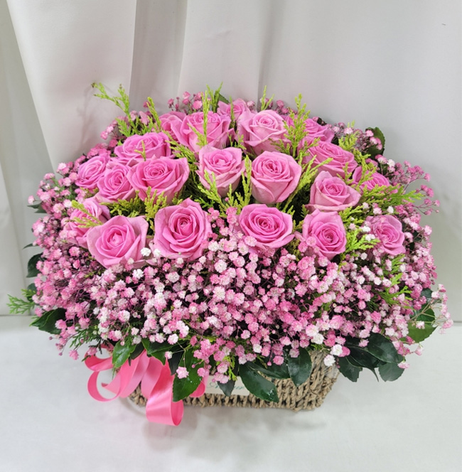 TV소개된 그 칼라안개와 핑크장미 꽃바구니