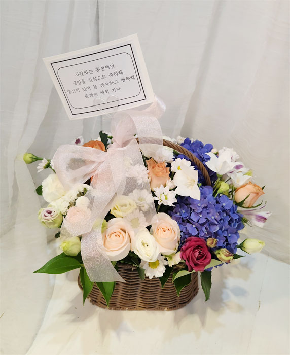 수국 장미 바구니