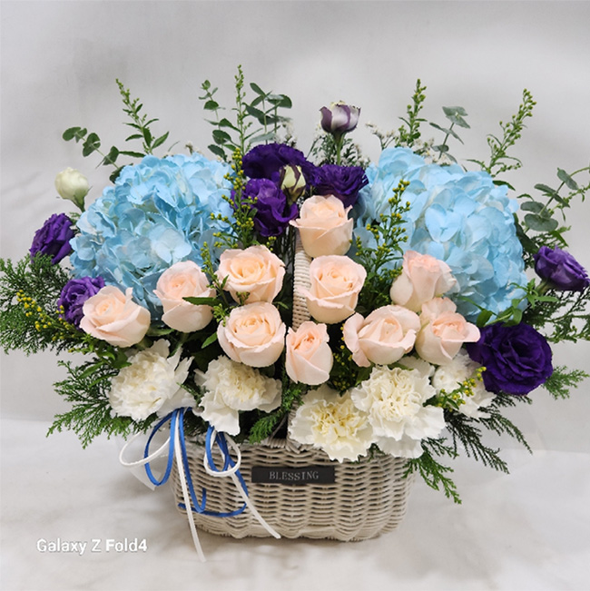 수국 장미 바구니