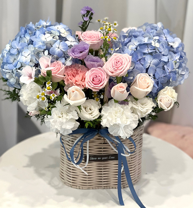 수국 장미 바구니