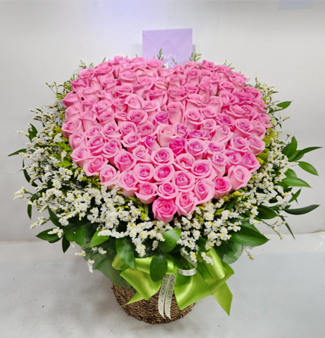 핑크 하트 장미 100송이
