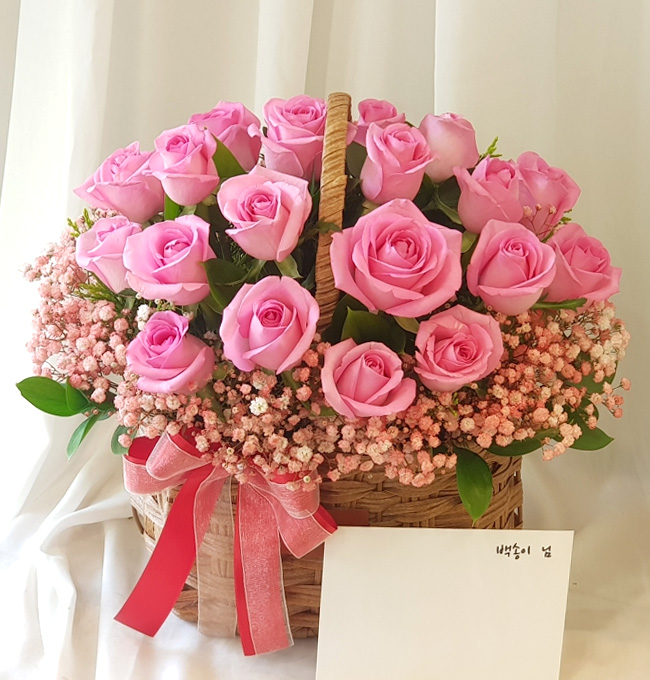 TV소개된 그 칼라안개와 핑크장미 꽃바구니
