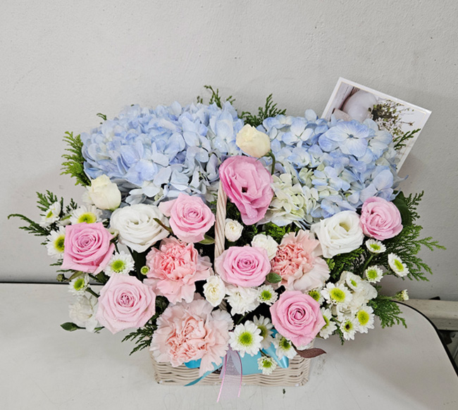 수국 장미 바구니