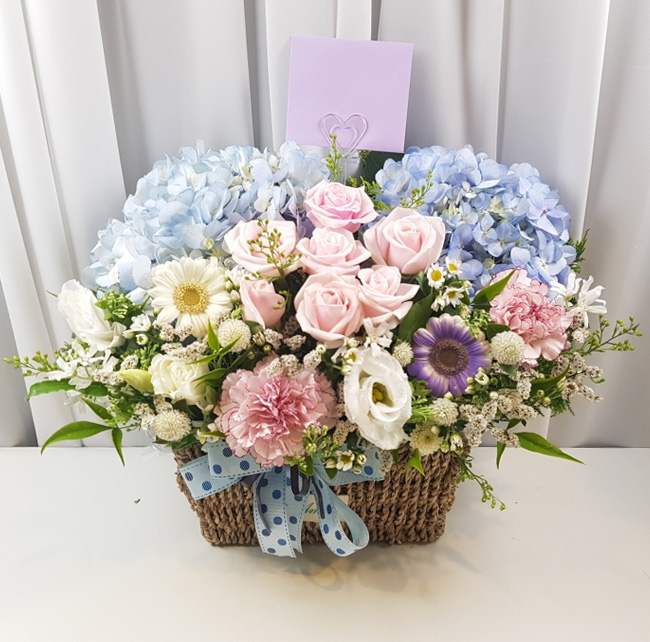 수국 장미 바구니