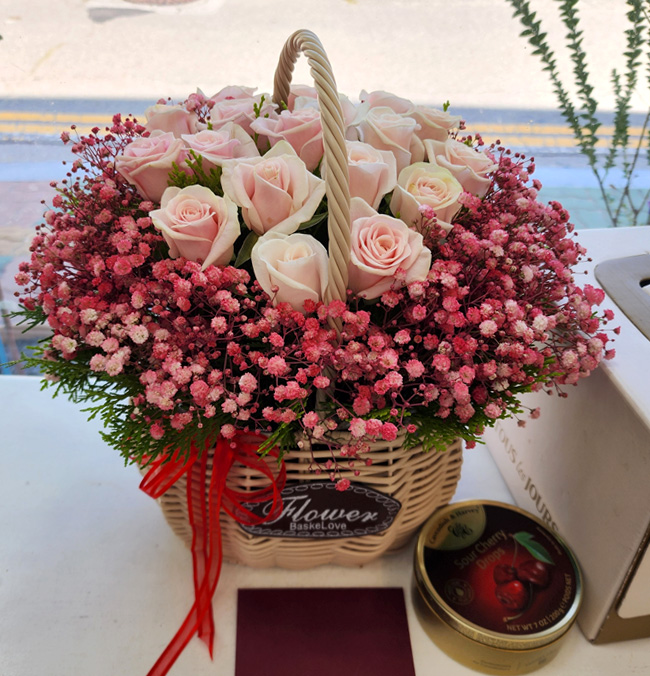 TV소개된 그 칼라안개와 핑크장미 꽃바구니 (캔디 포함)