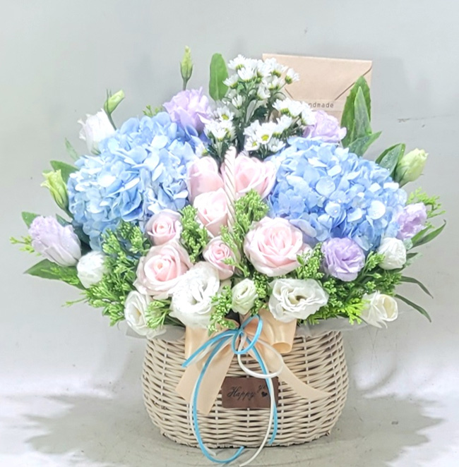 수국 장미 바구니