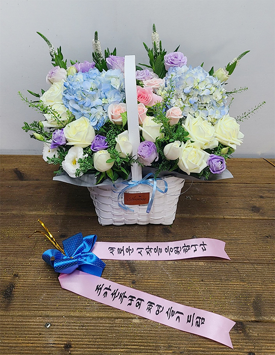 수국 장미 바구니