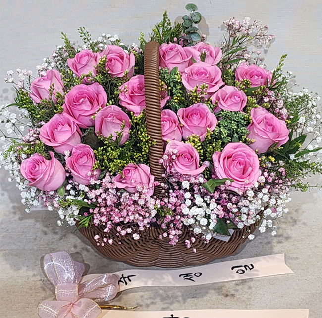 TV소개된 그 칼라안개와 핑크장미 꽃바구니