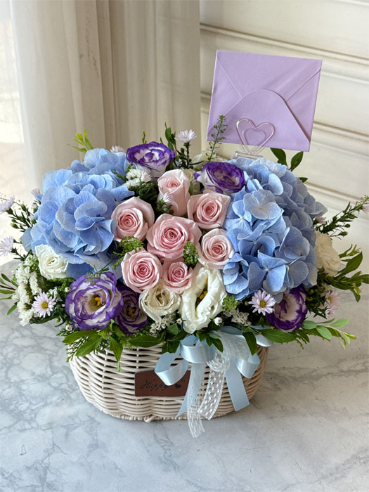 수국 장미 바구니