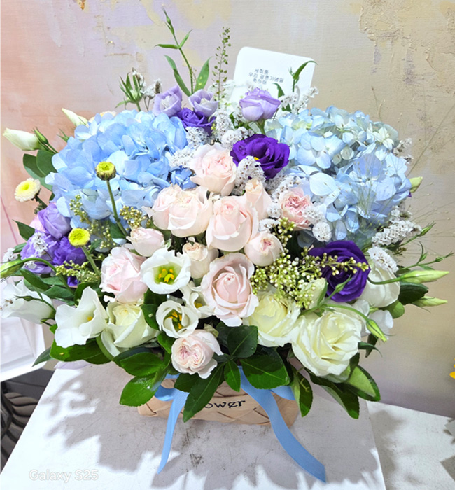 수국 장미 바구니