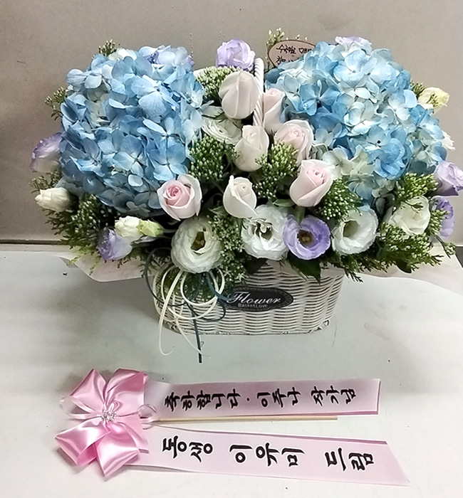 수국 장미 바구니