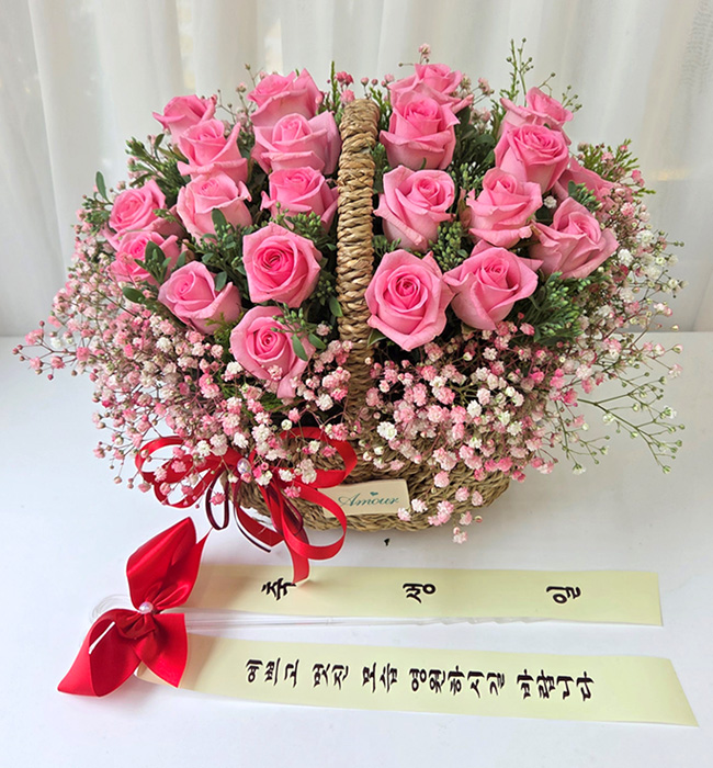 TV소개된 그 칼라안개와 핑크장미 꽃바구니