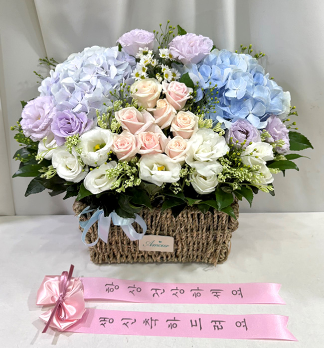 수국 장미 바구니