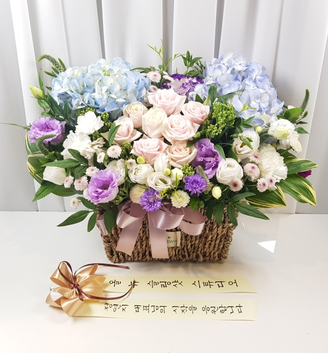 수국 장미 바구니