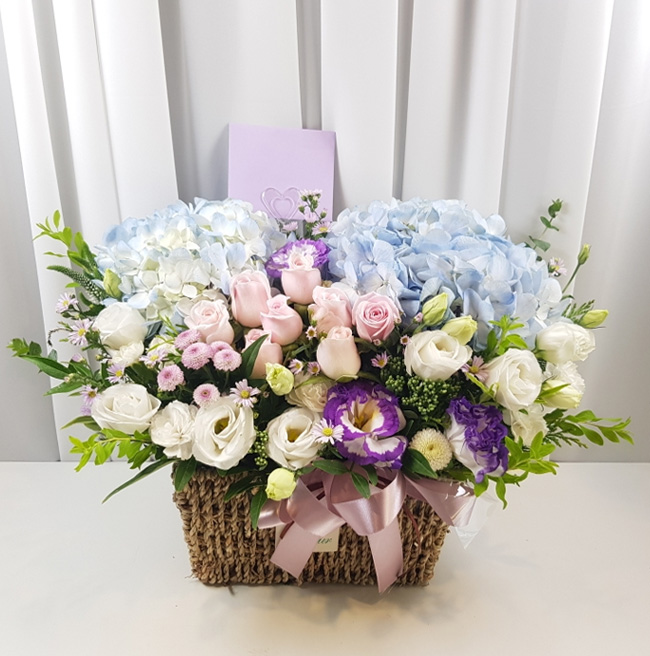 수국 장미 바구니