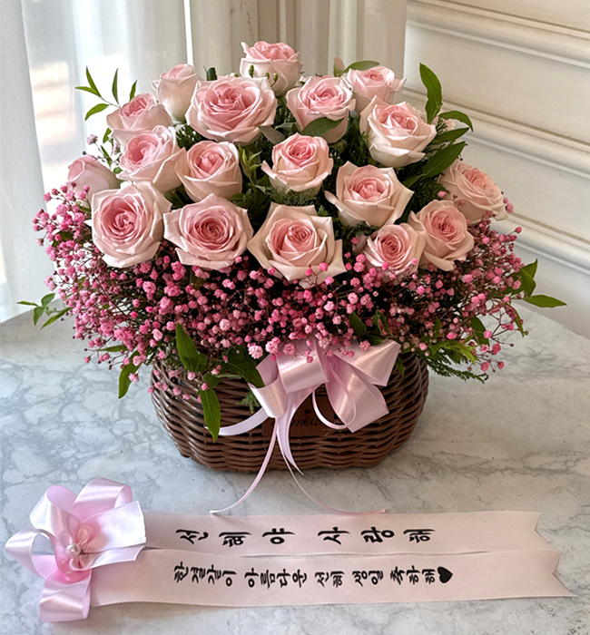TV소개된 그 칼라안개와 핑크장미 꽃바구니