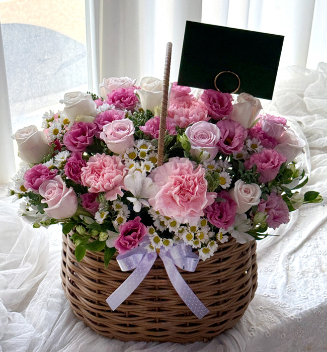 추천 퍼플&핑크 꽃바구니