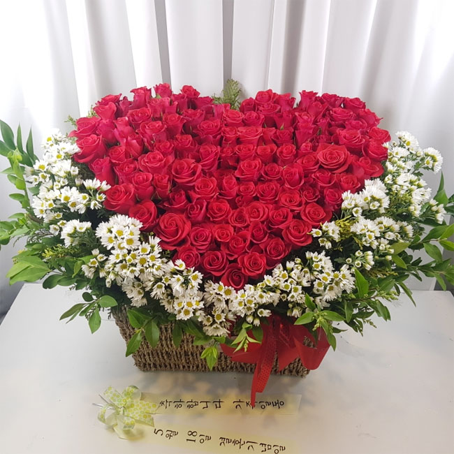 사랑고백 장미100송이 하트 꽃