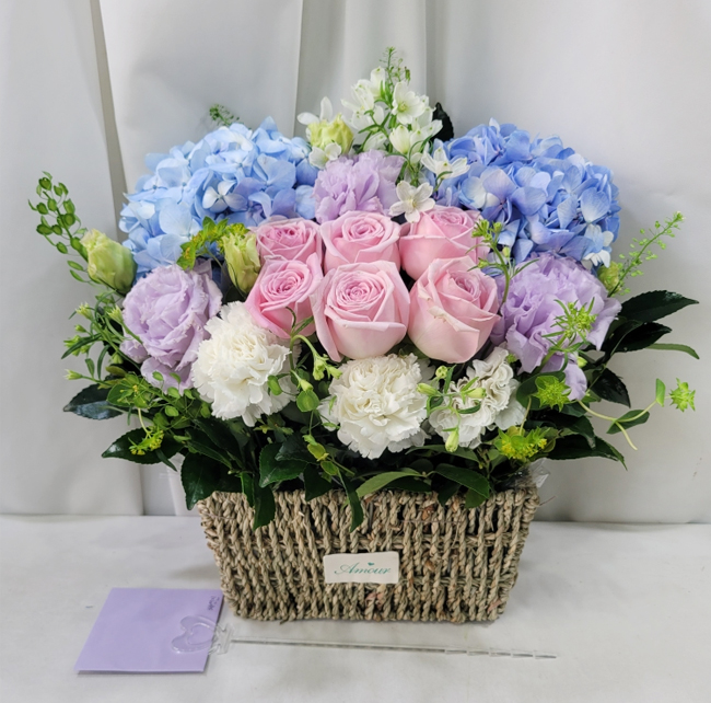 수국 장미 바구니