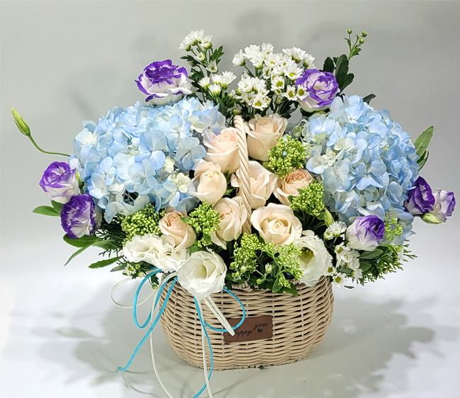 수국 장미 바구니