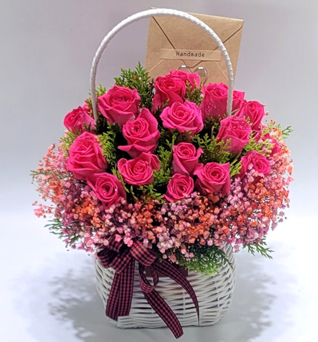 고급스러운 칼라안개 장미꽃바구니