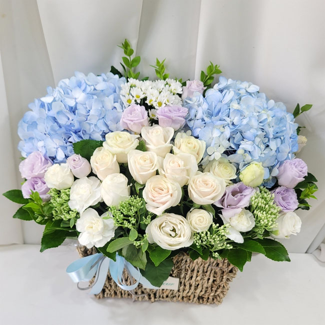수국 장미 바구니