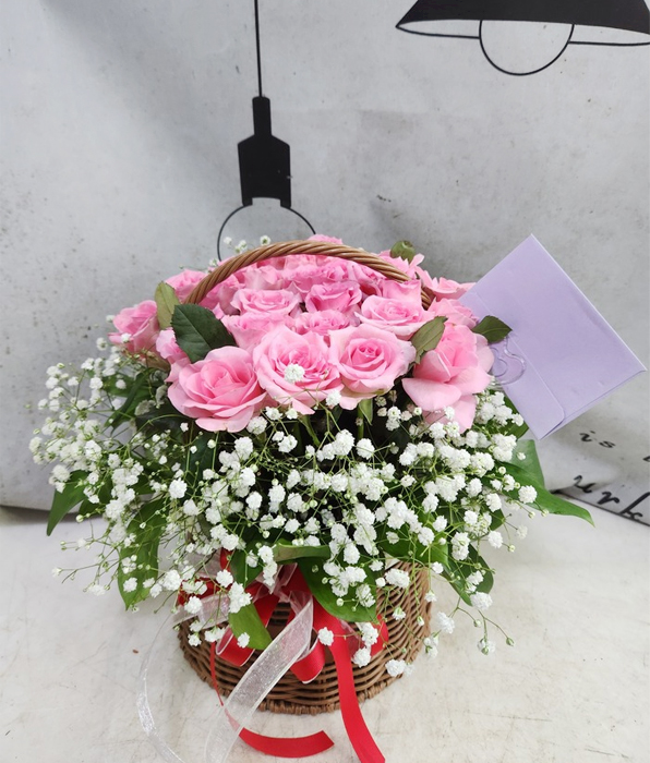 TV소개된 그 칼라안개와 핑크장미 꽃바구니