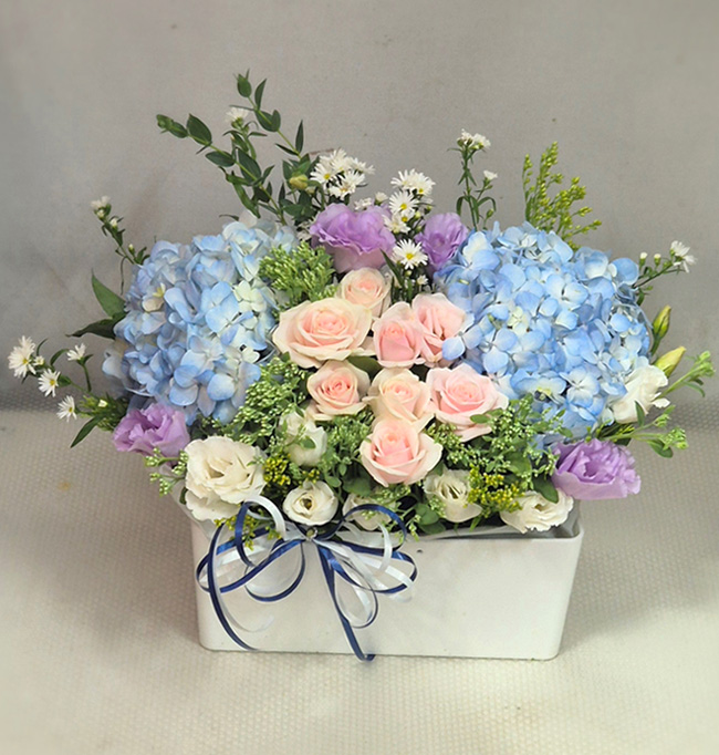 수국 장미 바구니