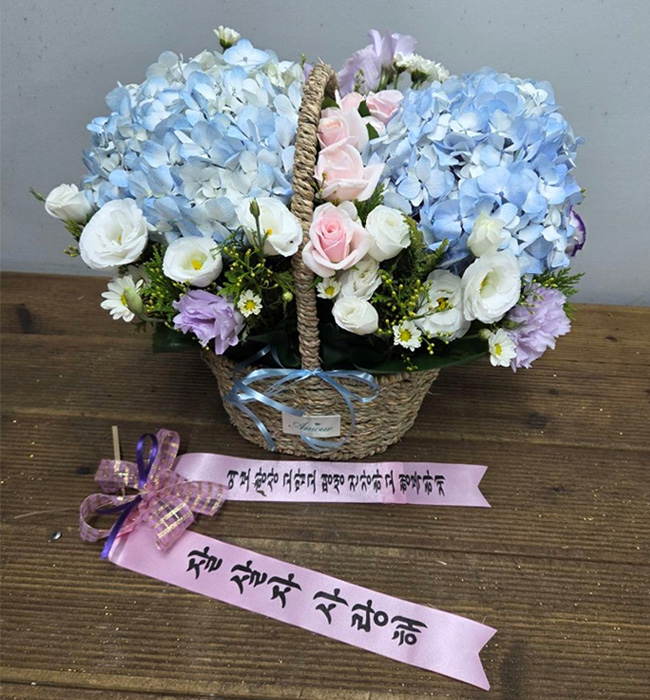 수국 장미 바구니
